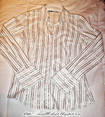Camisa blanca con rayas negras y plateadas,