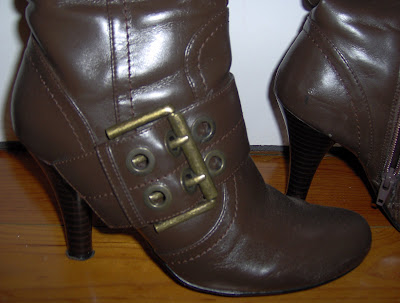 Botas de piel marrón de caña alta con apliques de hebillas doradas envejecidas